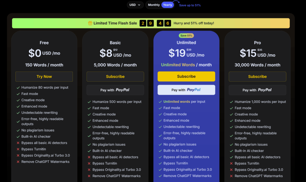 But remember — even paid plans don’t always guarantee 100% human-sounding content. It’s more like a strong filter than a total AI eraser.