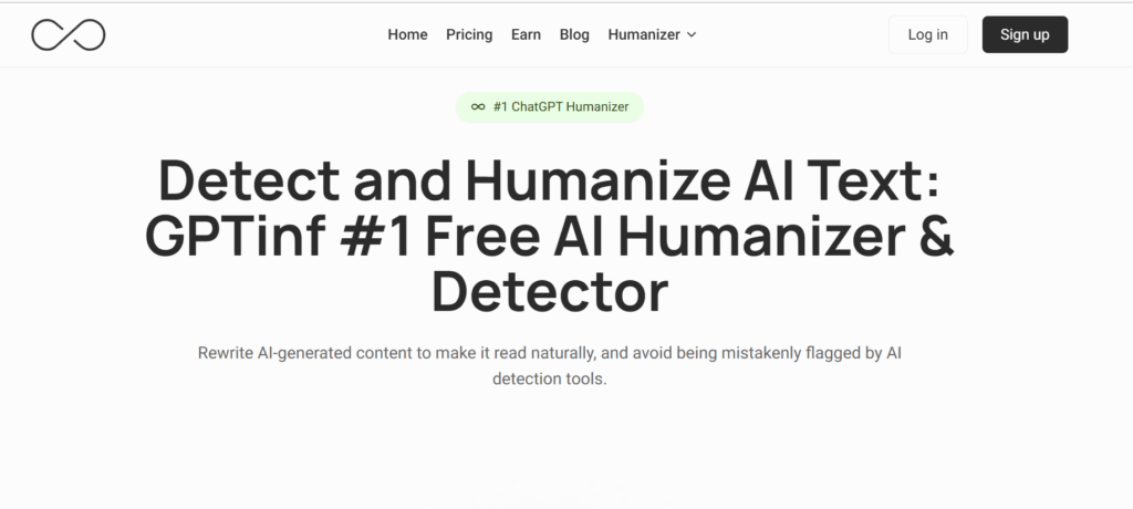 The main feature is its humanizer tool. It helps your AI-generated text avoid being detected. GPTInf rewrites your text while keeping it readable and natural.